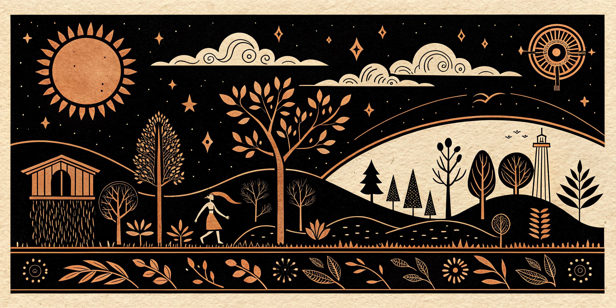 Observação da posição do Sol e a formação das sombras ao longo do dia, relacionando com a passagem do tempo.