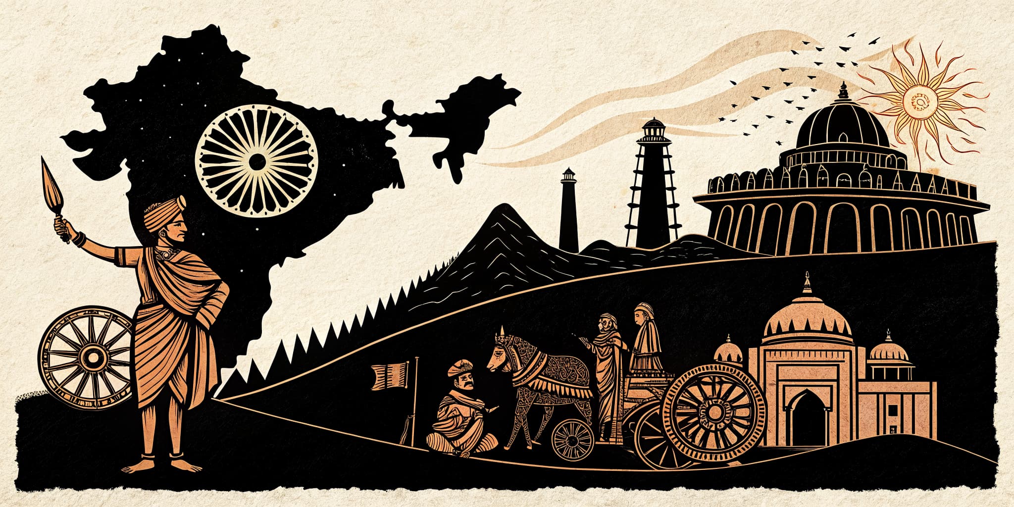 Class 12 History: Themes in Indian History. An intensive, source-based study of Indian history from the Harappan civilisation to the framing of the Constitution, exploring archaeological evidence, chronicles, devotional traditions, Mughal courts, colonial transformations, and the birth of the Indian republic.