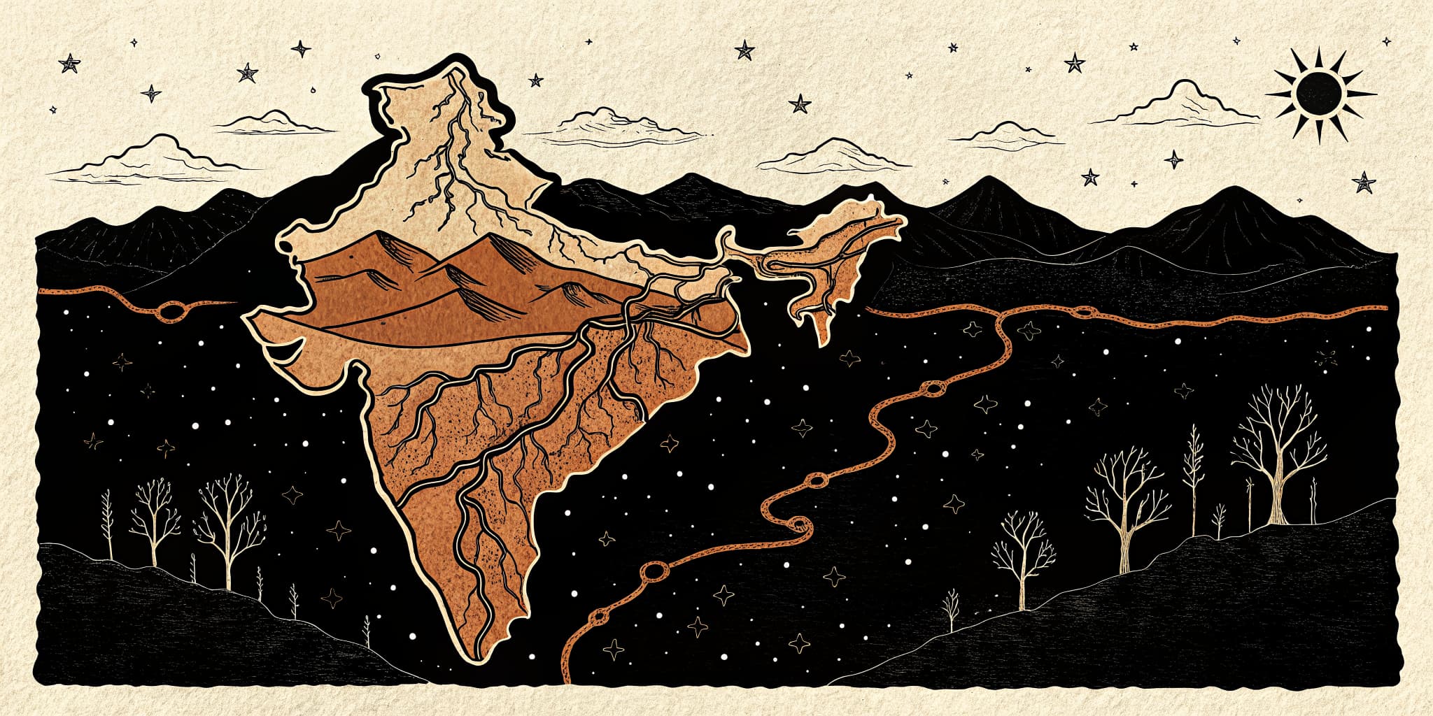 Students will explore the Himalayan river systems (Indus, Ganga, Brahmaputra), their tributaries, and their significance.